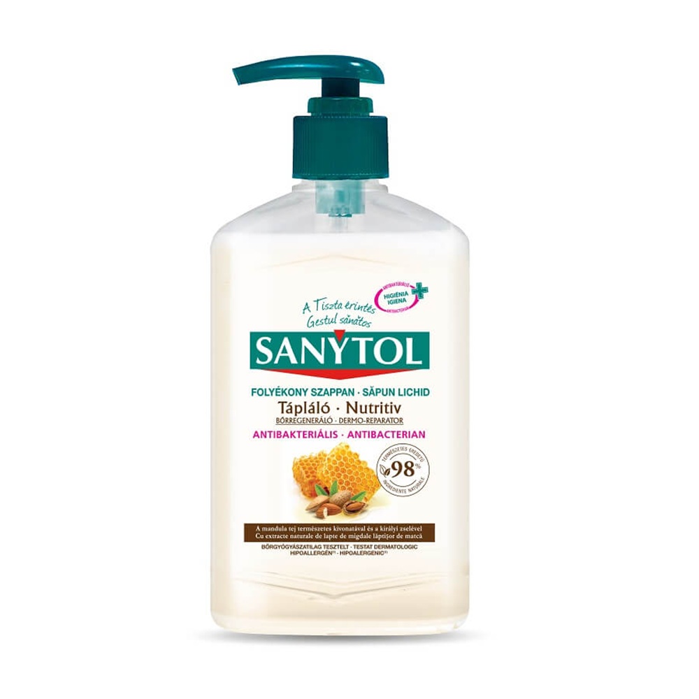 A(z) Sanytol Antibakteriális Folyékony Szappan 250ml 3 féle: Zöld Tea és aloe vera Mandulatej és méhpempő Konyhai Grapefruit és Lime ideális választás vendéglátóipari használatra. Prémium minőség és praktikus kialakítás egy csomagban.